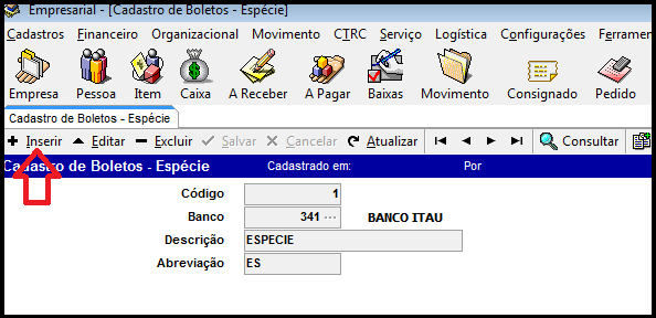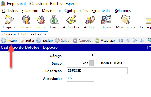 Cadastro de Boletos - Espécie¶