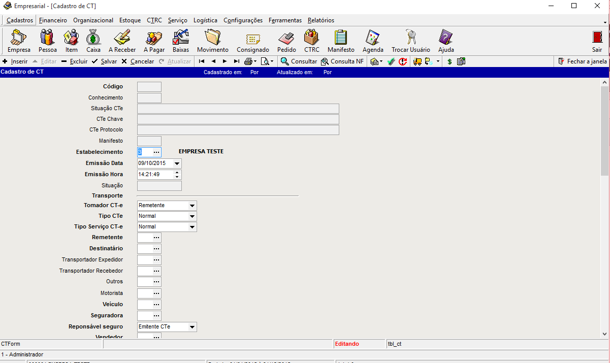 Cadastro de CT-e¶