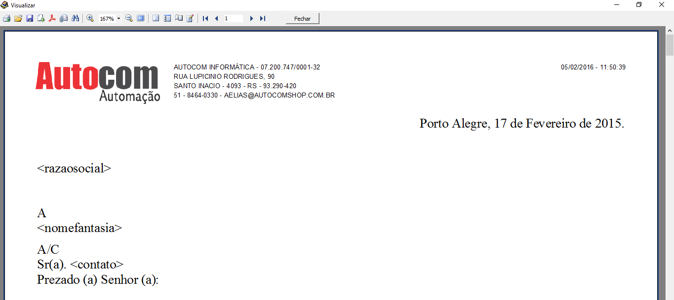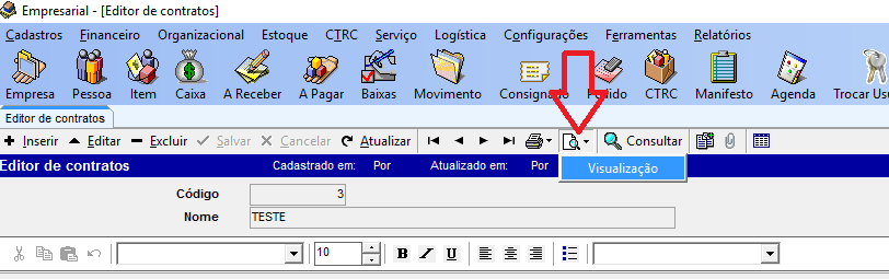 Utilize o botão visualização para ver como fico o modelo do contrato. Conforme tela abaixo: