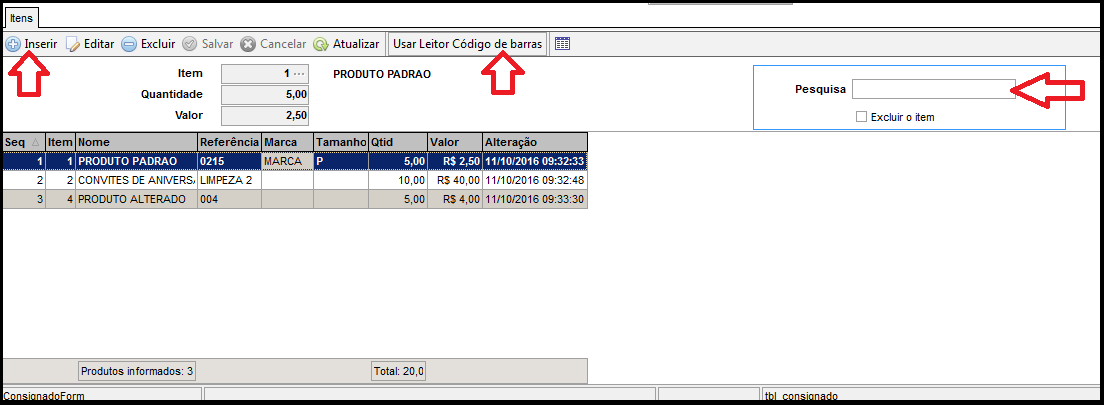 Clique na janela itens para inserir, pode informar os itens manualmente ou ative clicando no botão "Usar leitor código de barras" para realizar conferencia dos itens com leitor. Conforme imagem abaixo.