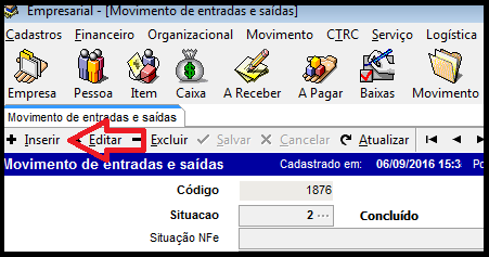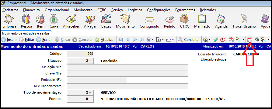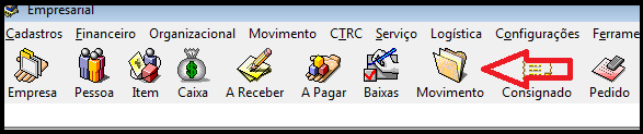 Para emitir uma nota de serviço acesse a tela “Movimento” através do botão “Movimento”. Conforme imagem abaixo;