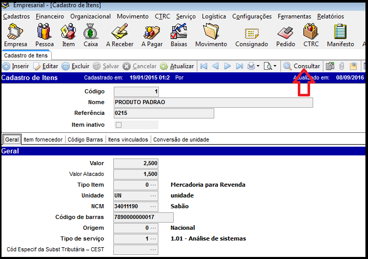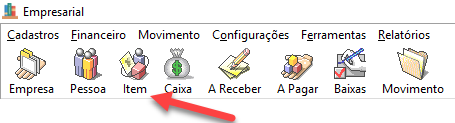 Para realizar acesso ao cadastro ou consulta de item, clique no ícone. Conforme imagem abaixo.