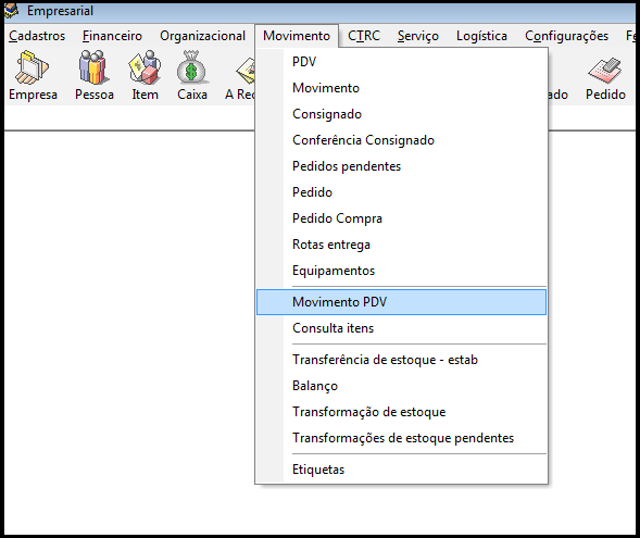 Para realizar acesso a tela de movimento PDV acesse, movimento e movimento PDV. Conforme imagem abaixo.