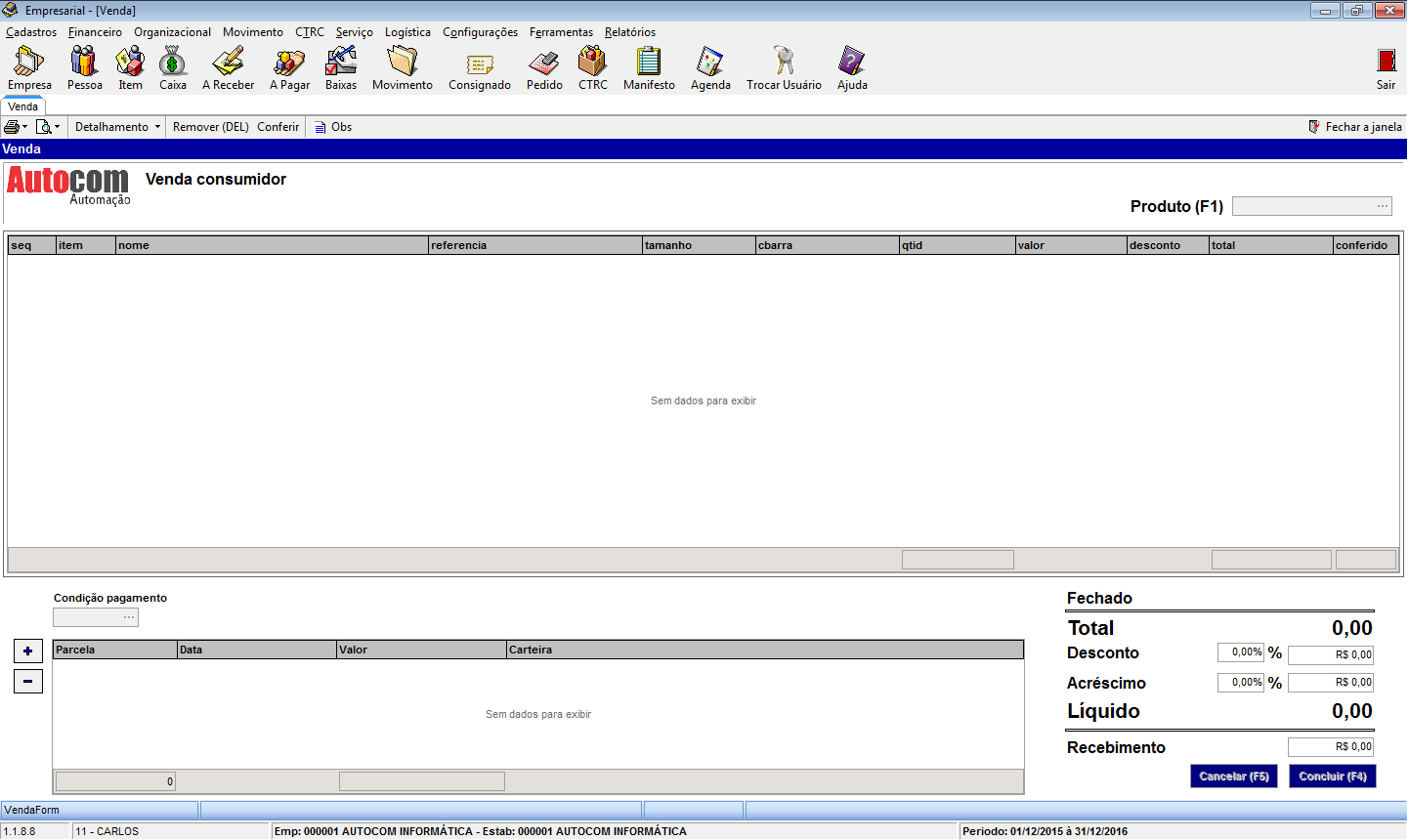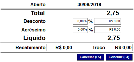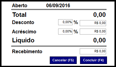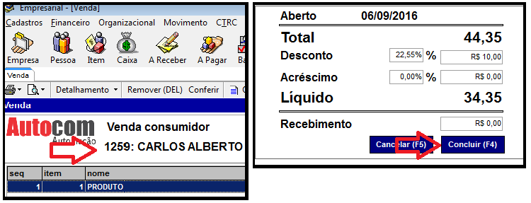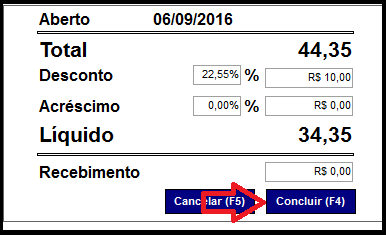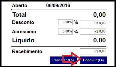 Para concluir a venda, clique apenas no botão Concluir ou (F4). Clique em concluir para finalizar a venda.