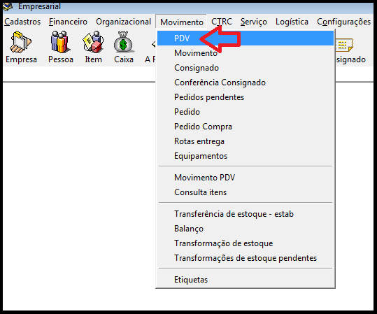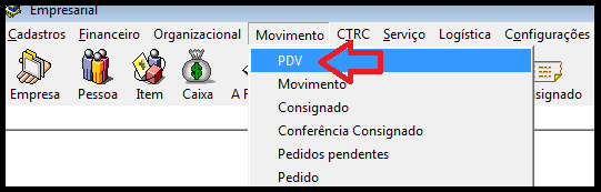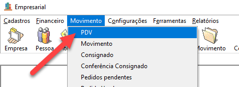 Clique em menu: Movimento / PDV. Conforme imagem abaixo;