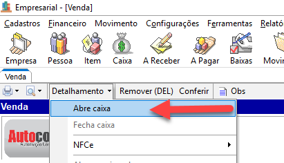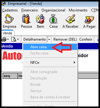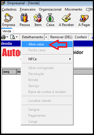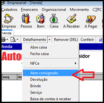 Estando com o caixa aberto, clique no botão detalhamento e abre consignado.