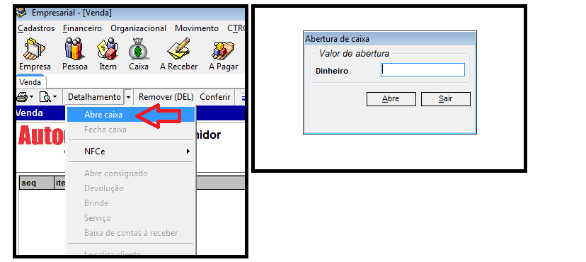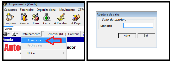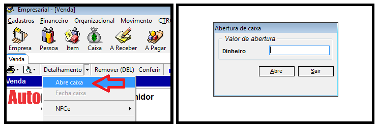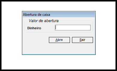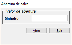 Irá exibir a tela para informar valor de abertura do caixa (fundo de troco do dia) e depois, clique no botão "Abre", conforme imagem abaixo: