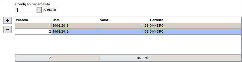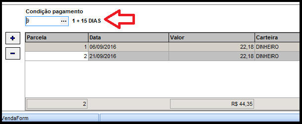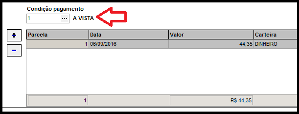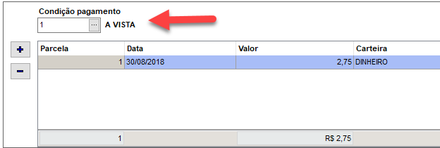 Caso seja utilizada outra forma de pagamento, selecione atráves do campo “Condição de pagamento”