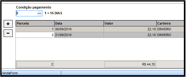 Ao modificar o valor da parcela, deve-se ajustar o valor das outras parcelas para que o total corresponda ao total da venda.