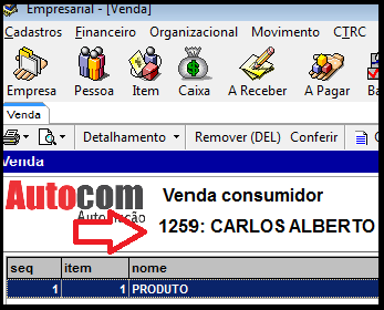 Ao selecionar o cliente, o sistema irá mostrar no cabeçalho da tela os dados do mesmo, clique em concluir para finalizar a venda. Conforme imagem abaixo;