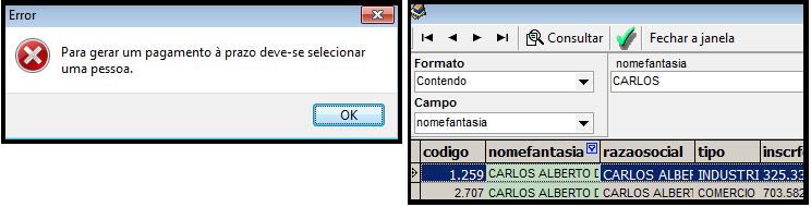 Caso escolha uma carteira para pagamento À PRAZO, abrira uma janela sendo obrigatório localizar um cliente para associar esta venda, clique em OK para isso.