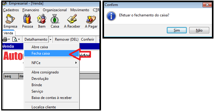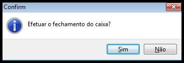 Para efetuar o fechamento do caixa, clique no botão detalhamento / Fechar. O sistema irá confirmar se deseja efetuar o fechamento do caixa.
