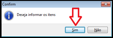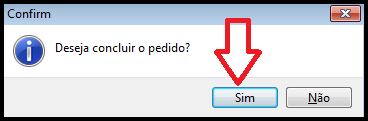 check verde para concluir o pedido, vai abrir uma janela perguntando se deseja concluir o pedido, clique em Sim. Conforme imagem abaixo.