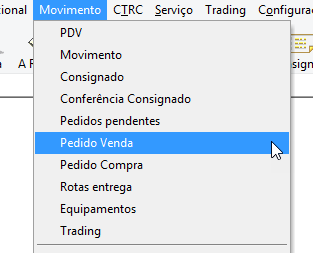 Ou acesse através do menu: Movimento / Pedido de venda, conforme imagem abaixo: