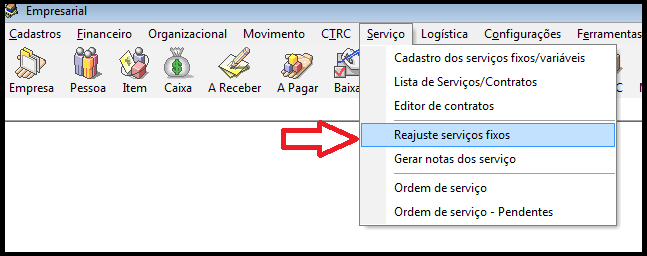 Para realizar acesso a reajuste serviços fixos acesse, serviço e reajuste serviços fixos. Conforme imagem abaixo: