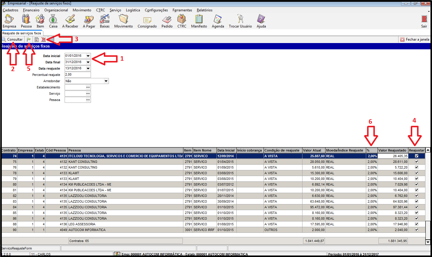 Nº2 - Consultar: Clique no ícone para consultar os clientes que deseja realizar o ajuste conforme período;