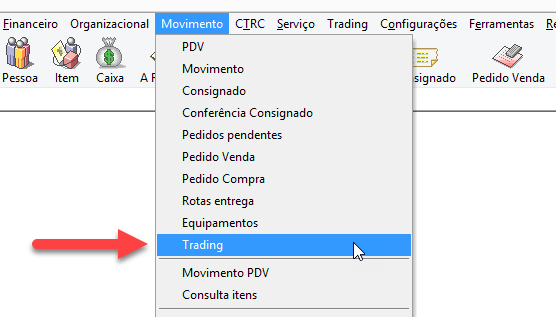 Para acessar a tela de gerenciamento da trading, acesse o menu: