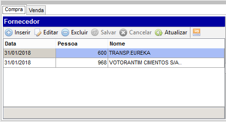 Clique no botão Inserir, selecione o fornecedor e após clique em Salvar