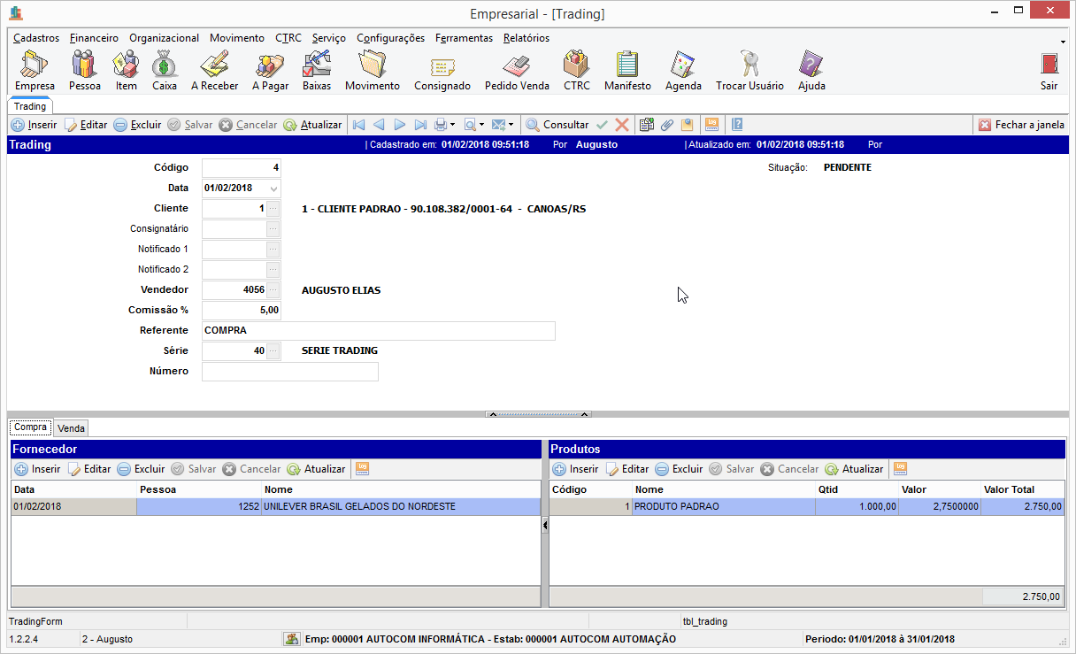 Neste roteiro, você será orientado como utilizar todos os recursos referente a uma operação de trading. Gerando as operação e controle para a operação de intermediação para exportação de mercadorias utilizando as operações de pedidos de compra e pedidos de vendas do sistema e a tela de gerenciamento da operação.