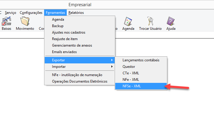 Siga as etapas para exportação do arquivo através deste link: Exportar XML - NFSe