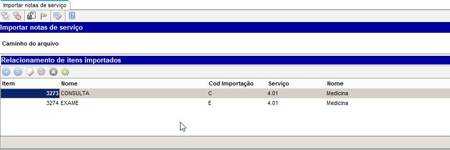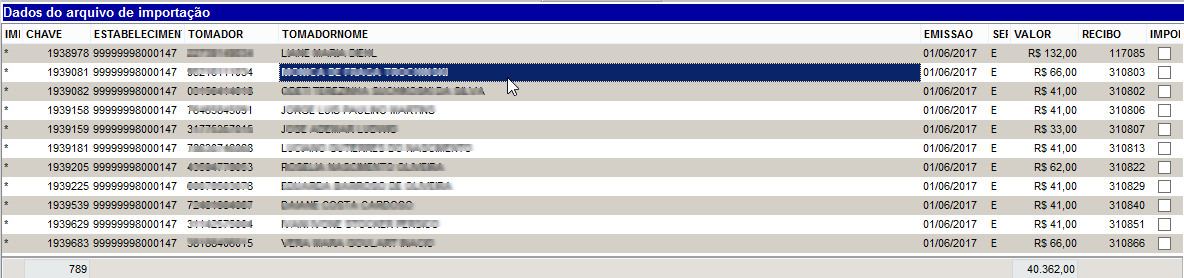 Ao concluir o processo de importação, todos os registros importados ficarão com a marca "*" na primeira coluna.