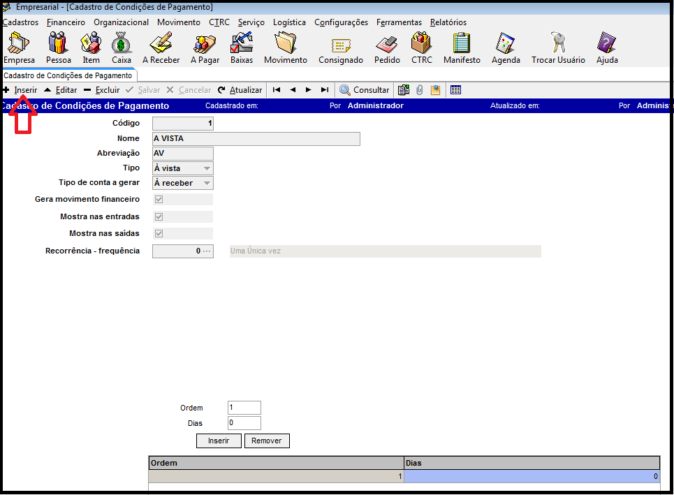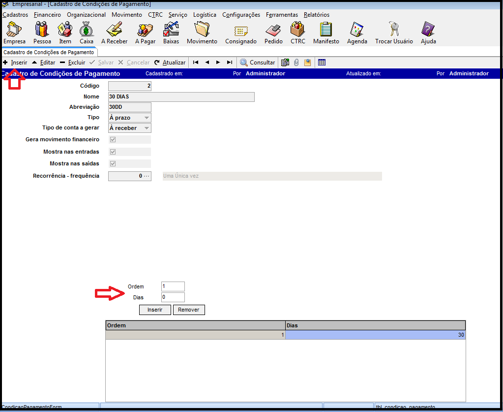 Apos informa clique enter para registrar a condição de pagamento, conforme imagem abaixo.