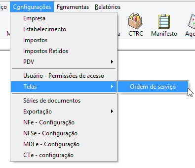 Acesse através do menu: Configurações / Telas / Ordem de serviço, conforme figura abaixo: