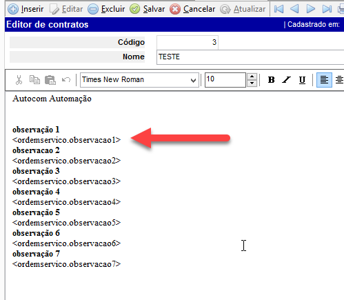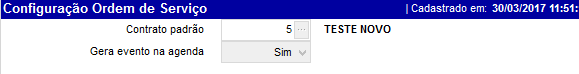 Ao informar o contrato padrão, o mesmo será utilizado sempre ao adicionar uma nova ordem de serviço.
