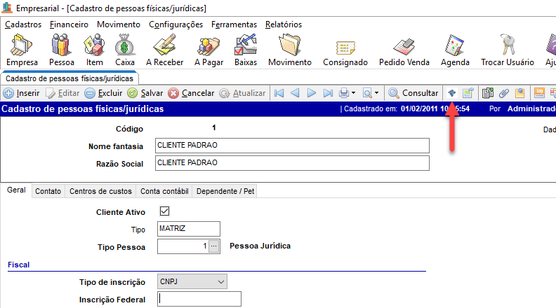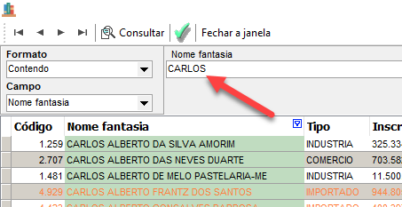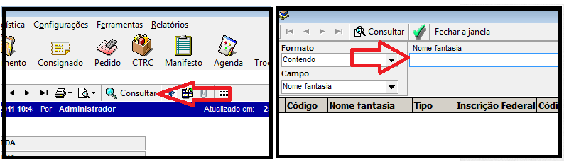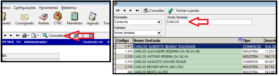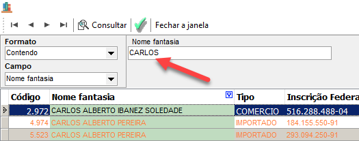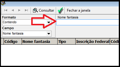 Para consultar um cadastrado pré-existente, clique no botão Consultar, irá exibir uma tela