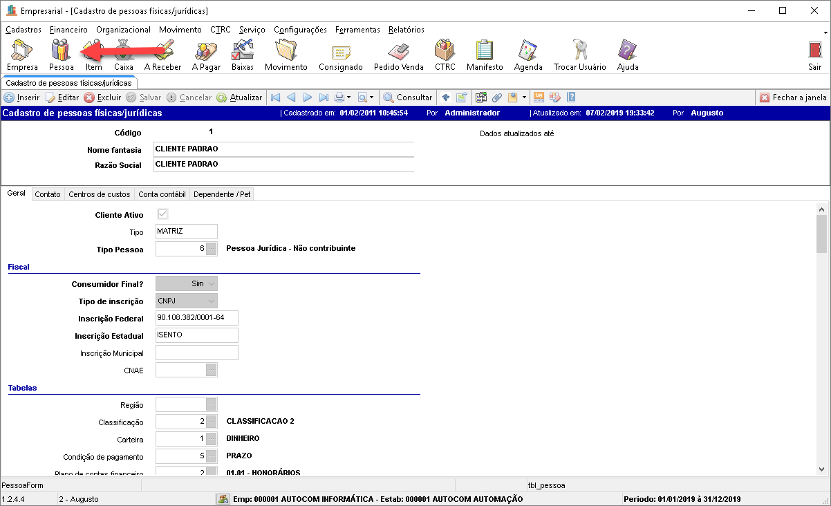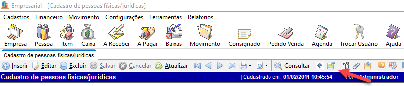 Para acessar, clique no botão "Pessoa" ou através do menu: Cadastros / Pessoa / Pessoa