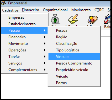 Para realizar cadastro de Vínculo acesse, cadastros, pessoa e região. Conforme imagem abaixo.