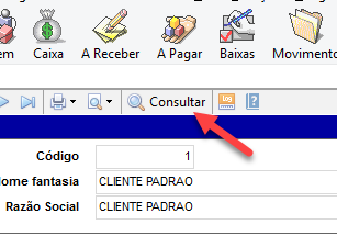 Localiza o cadastro principal através do botão consultar: