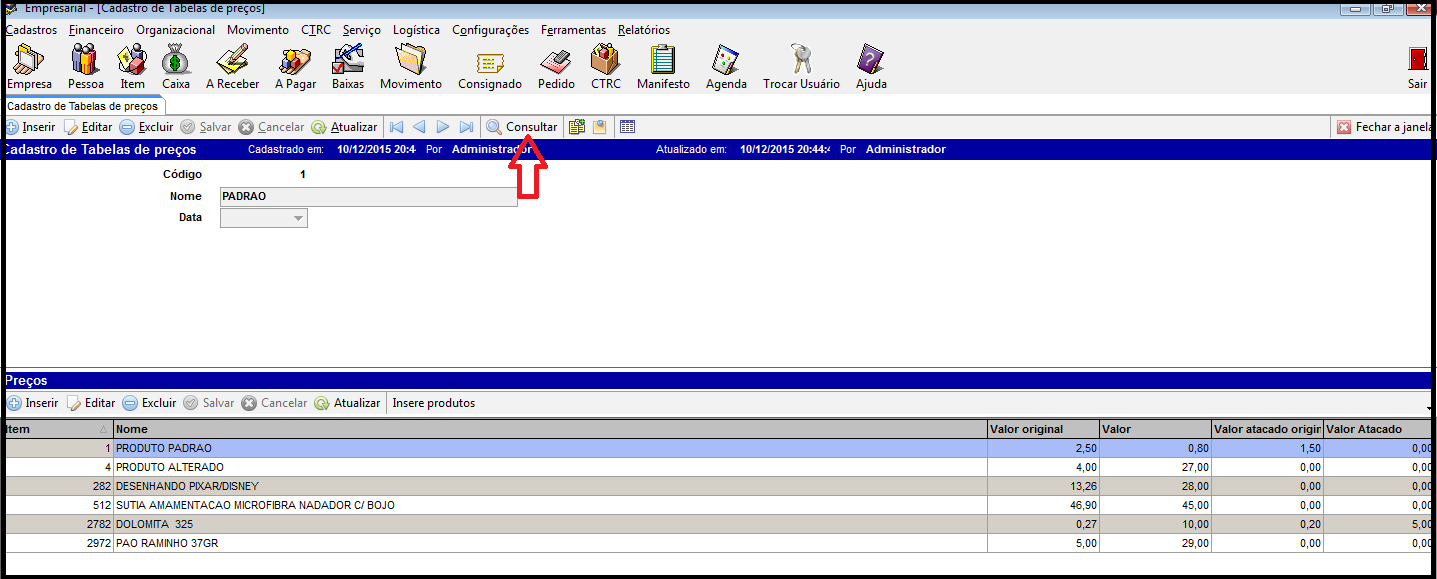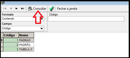 Ao acessar a tela clique em consultar e consultar na próxima tela novamente ira visualizar as tabelas cadastradas no qual sera aplicado nos clientes que tiveram tabelas diferenciadas. Conforme imagem abaixo.