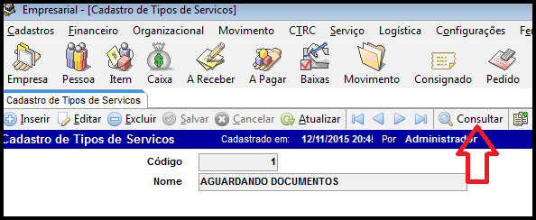 Ao acessar a tela clique em consultar e consultar na próxima tela novamente ira visualizar os Tipos cadastrados no qual sera utilizado para classificação. Conforme imagem abaixo.