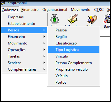 Para realizar acesso ao cadastro de Tipo e logística acesse, cadastros, pessoa e tipo de logística. Conforme imagem abaixo.