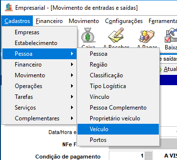 Para realizar o cadastro de Veículo acesse cadastro, pessoas, veículo. Conforme imagem abaixo.